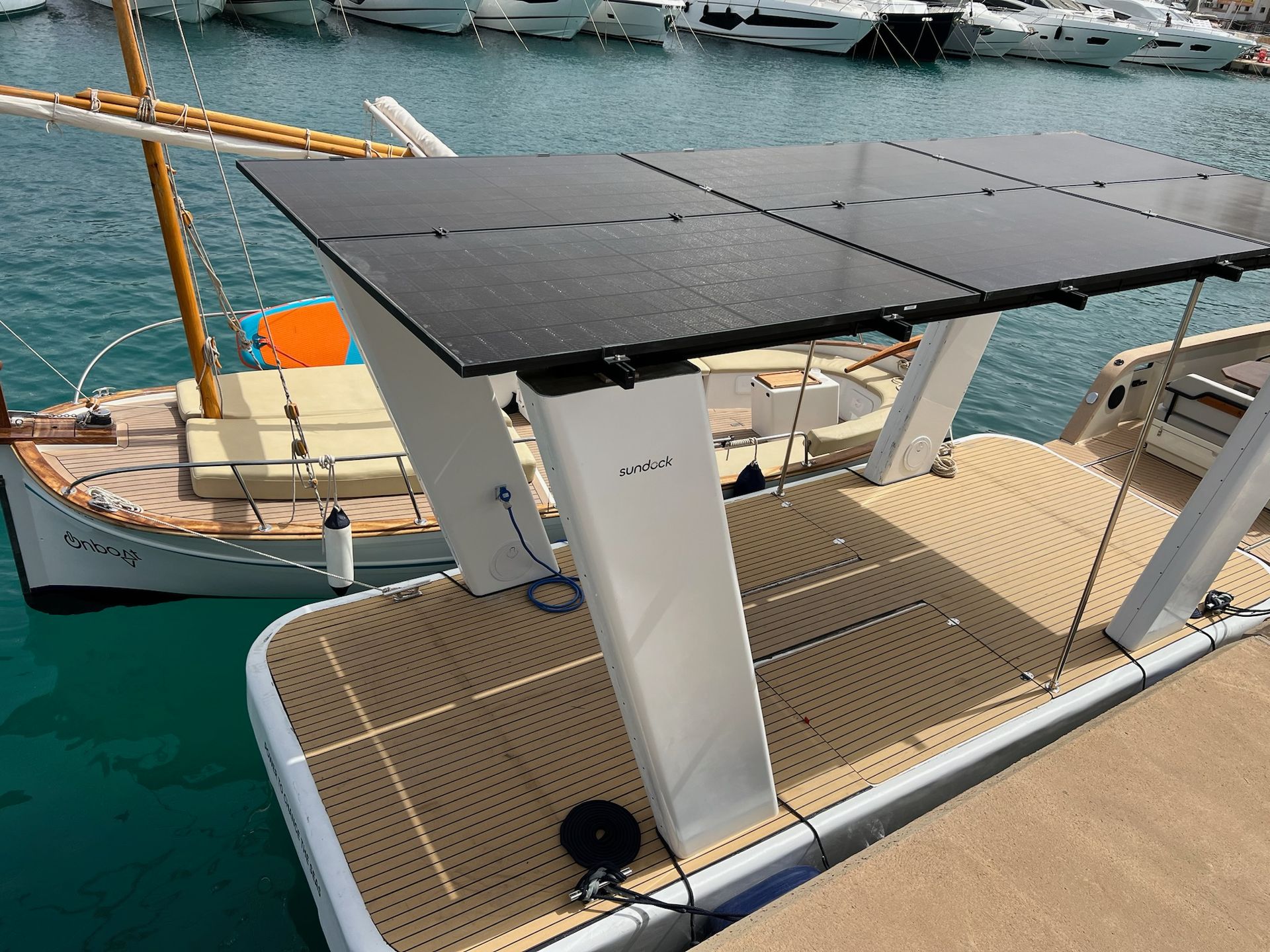 Sundock aprovecha el poder del Sol con paneles solares de 2.5kW capaces de generar hasta 23 kWh diarios, asegurando que la energía siempre sea abundante para embarcaciones eléctricas, híbridas o tradicionales.